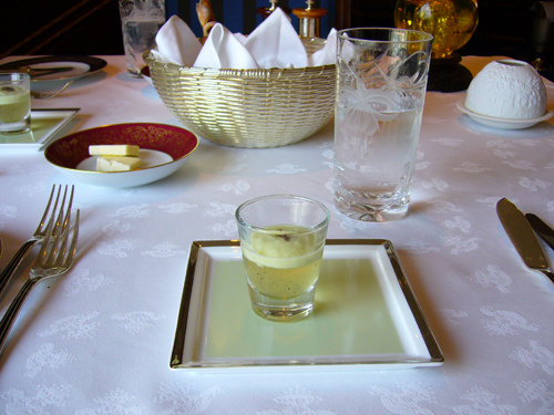 點菜後等了一會,侍應小姐送上餐前開胃菜。我吃不出是甚麼來的,只能說是帶點酸帶點鹹味的啫喱。