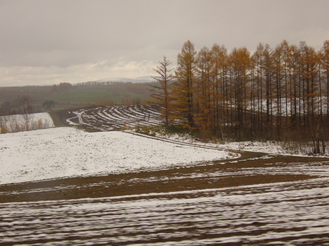 十一月中旬的北海道,過了漫天紅葉的盛況,也未出現處處白雪的景致,卻讓我在美瑛富良野一帶看到了黃葉加瑞雪的美景。