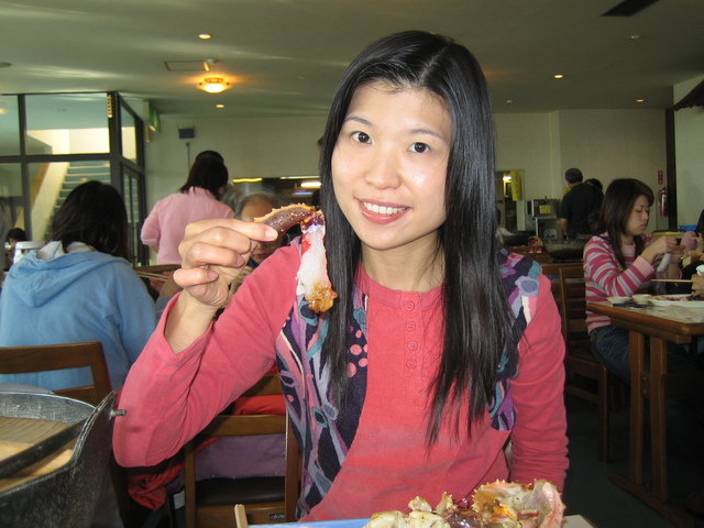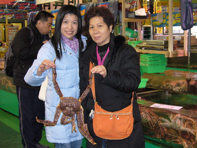我們在海鮮市場買了一隻長腳蟹;蟹腳及蟹鉗作刺身,其餘的部分作火鍋材料。